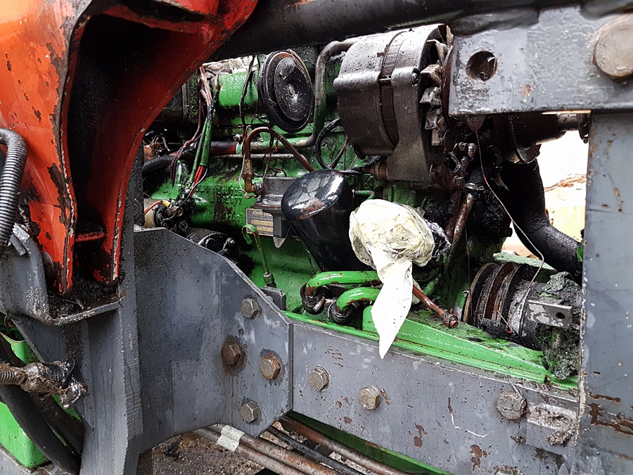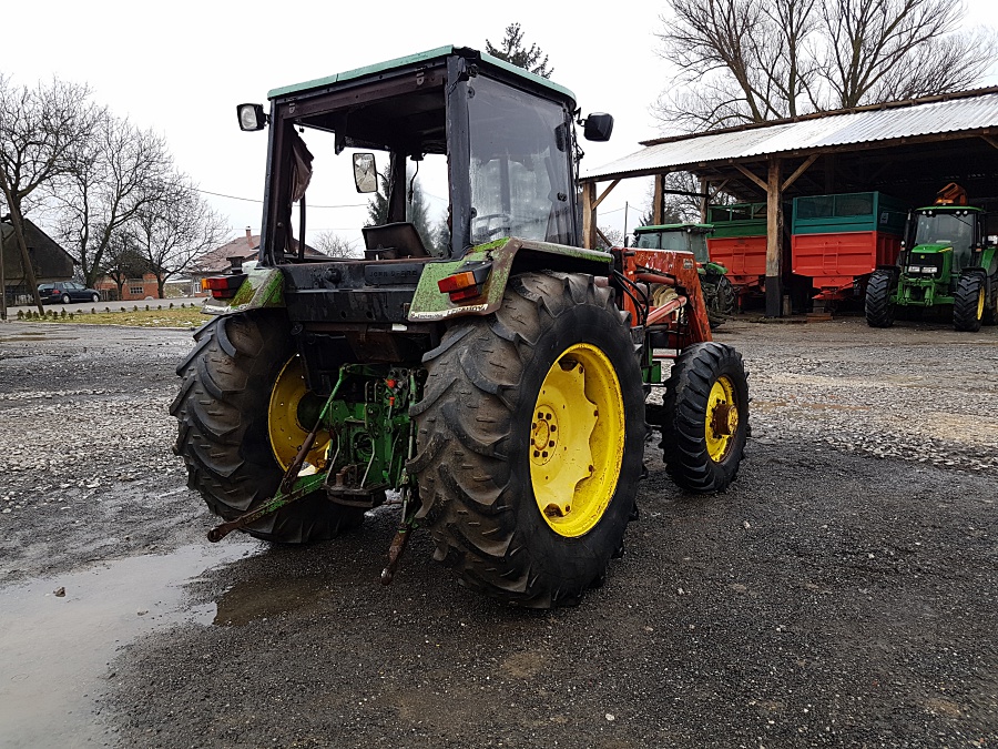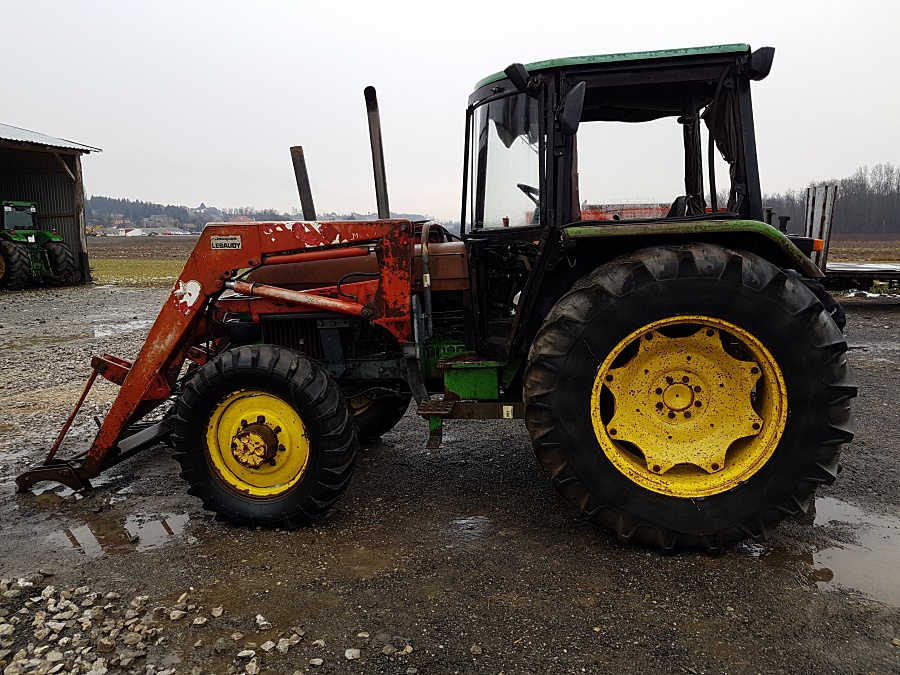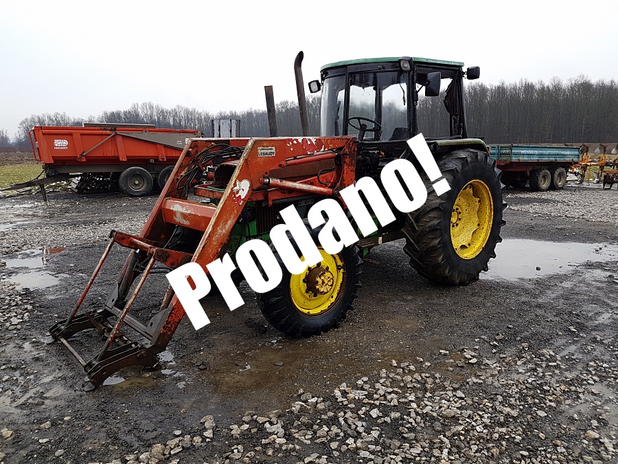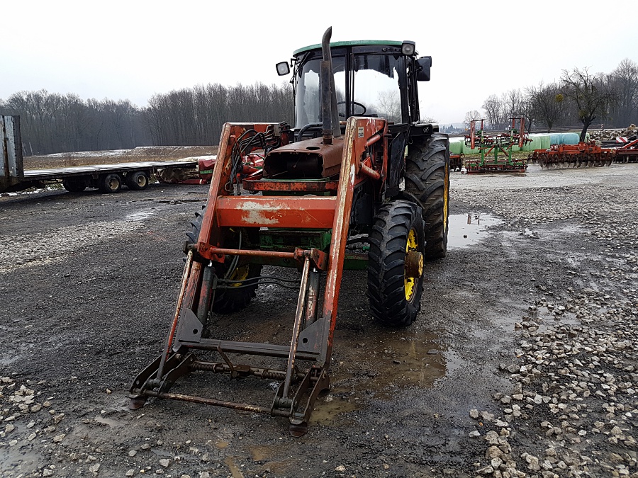 Traktor John Deere 2250, prednja vuča, SG2 kabina, 65 ks, utovarivač Mailleux, traktor je djelomično izgoren.